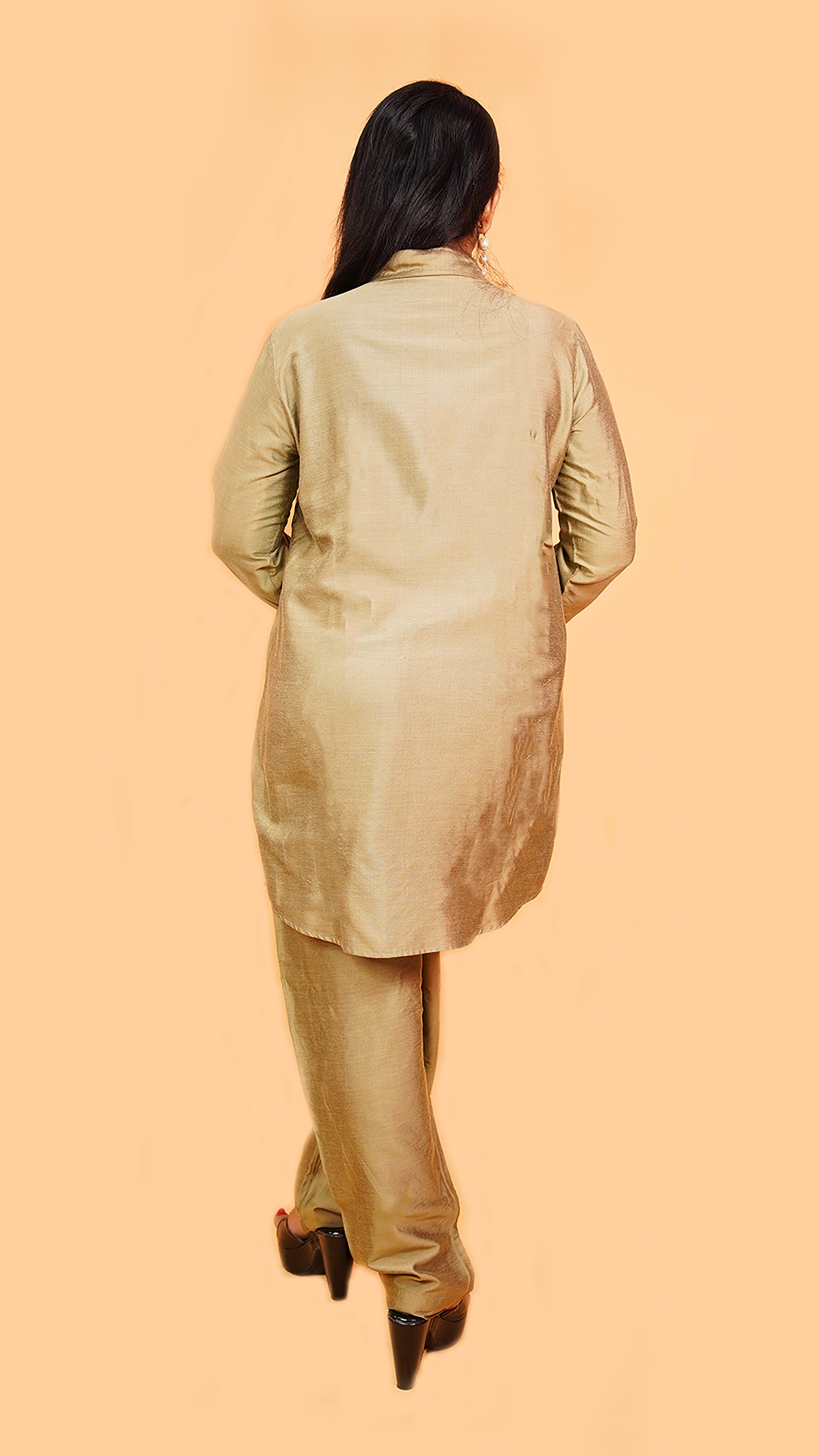 BEIGE CO-ORD SET WITH MINIMALIST EMBROIDERY IN SILK MATERIAL